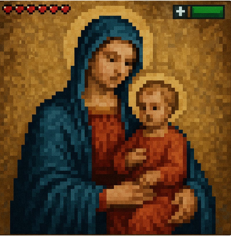 What’s wrong with seeking God? Is my grandmother an idiot? All my antepasados? And just because there is a physiological mechanism that works while we are in the act of pray or meditation, it doesn’t strip the experience of meaning or purpose. We seek God for a purpose, and as we mix our consciousness with the digital, data-driven world, it makes sense that we would shift our metaphors from the land of Egypt to a pixelated landscape of Minecraft.