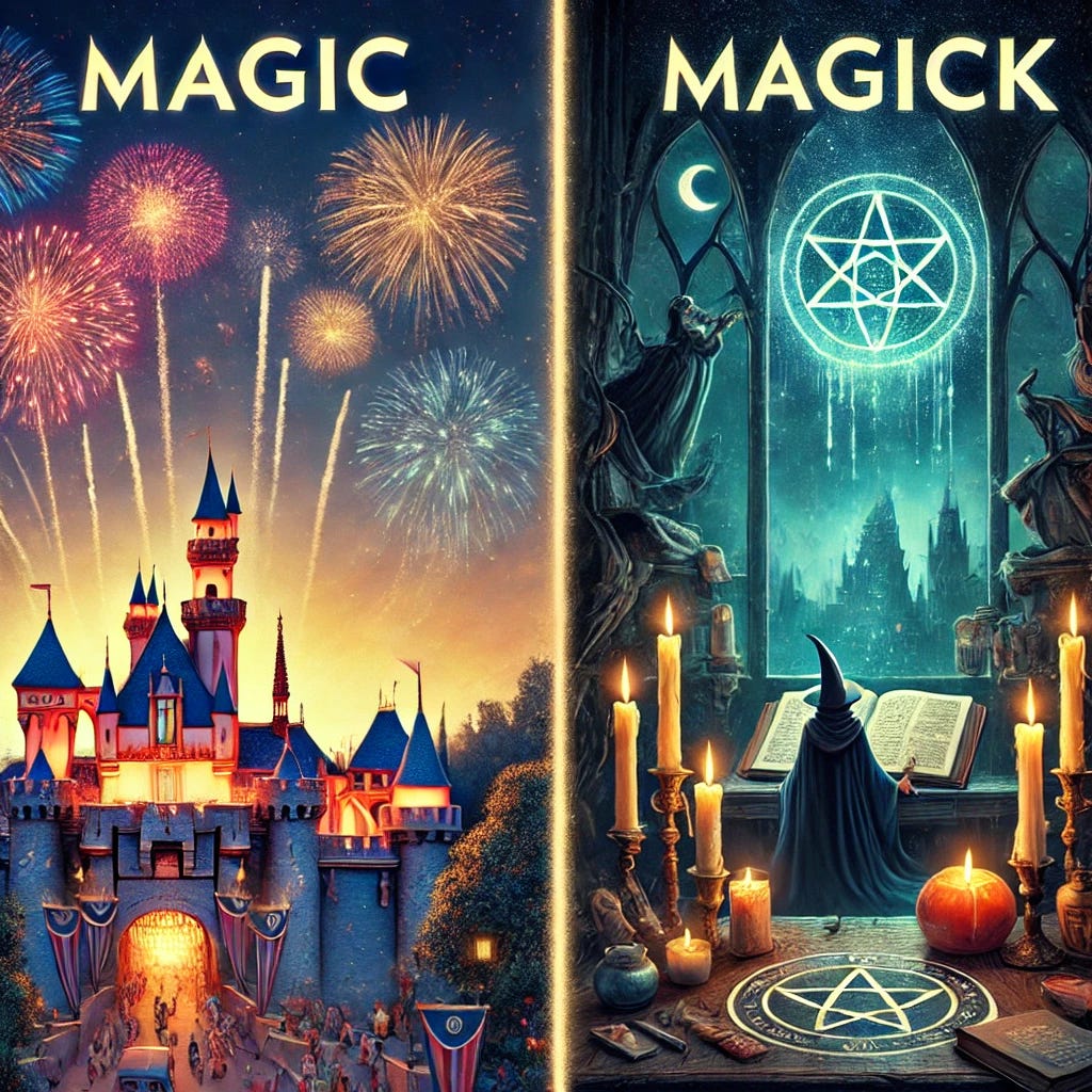 When magick has a K at the end it is associated with the occult, with witchcraft, the practicing of magic, white, black, or gray.