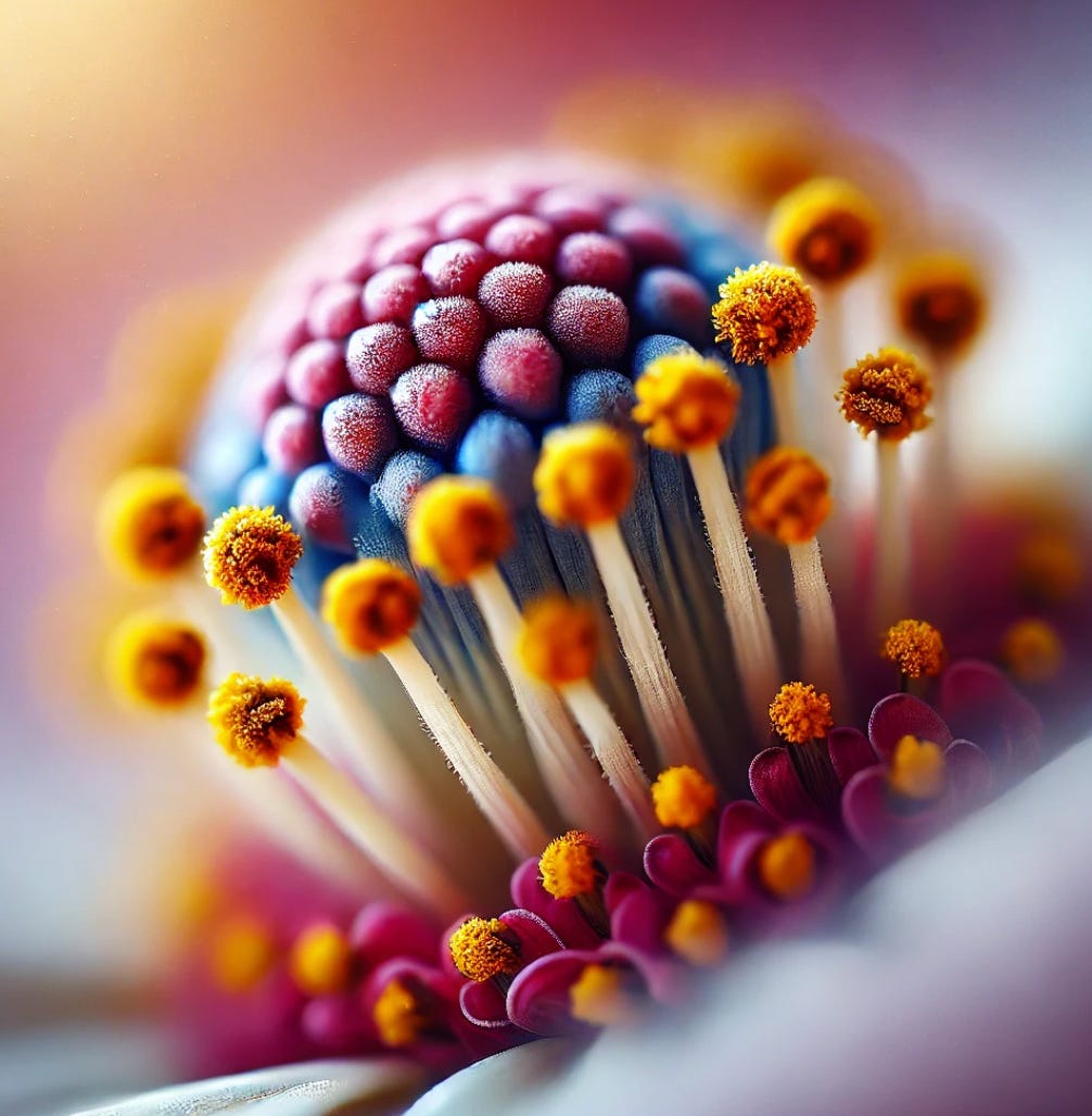 Even more stunning is what neuroscientists tell us about what we literally see. We have a tiny part of our eye called the fovea, which is slightly bigger than the period at the end of this sentence. This is the part of the eye that can focus, it’s high res, like a portrait photograph of a stamen. Our eyes can only see the stamen.