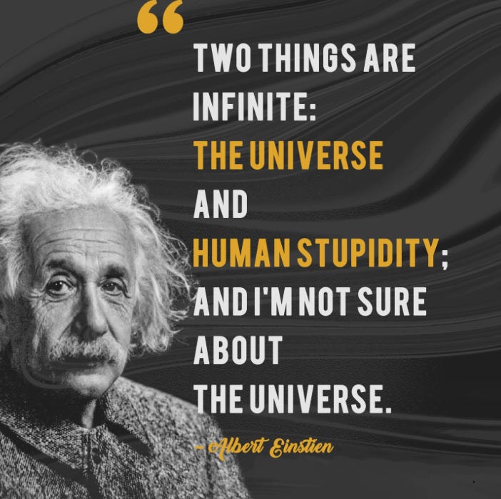 Humanity is collectively dumb. We are destroying our home (Earth) while we create technology that hurts more than helps (i.e. social media). We have traded community for this modern landscape and in the United States at least, life expectancy is on the decline. That is dumb of us!
